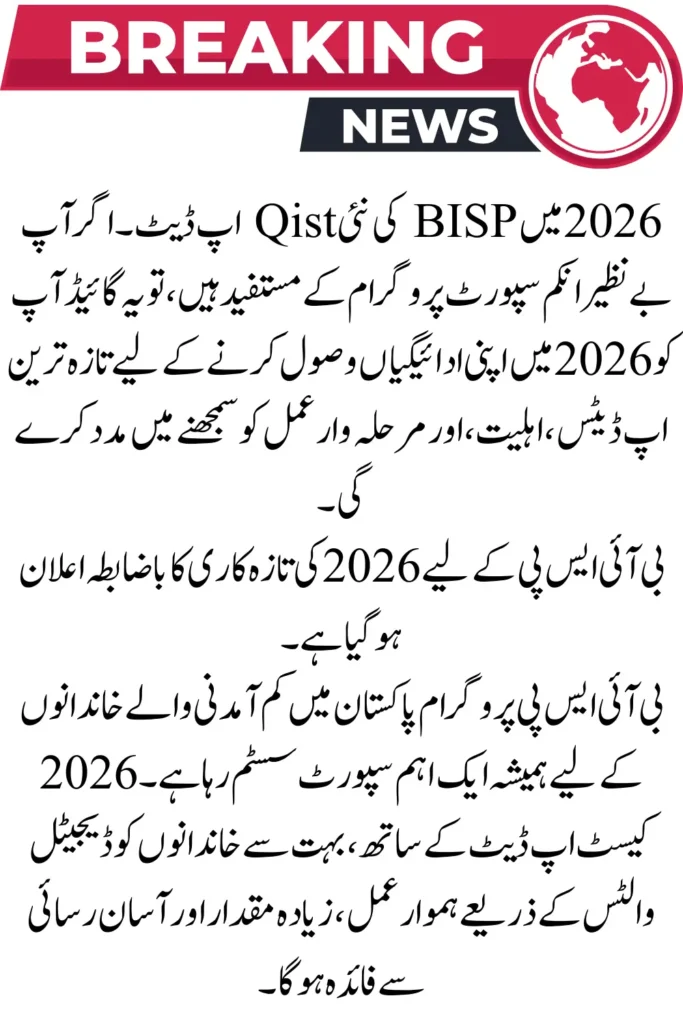 BISP New Qist Update in 2026. If you are a beneficiary of the Benazir Income Support Program, this guide will help you understand the latest updates, eligibility, and step-by-step process to receive your payments in 2026.