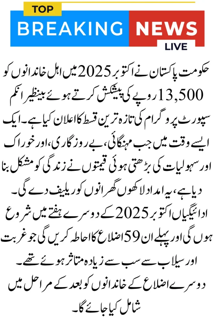 The payments will begin in the second week of October 2025 and will first cover 59 districts that were most affected by poverty and floods. Families in other districts will be included in later phases.